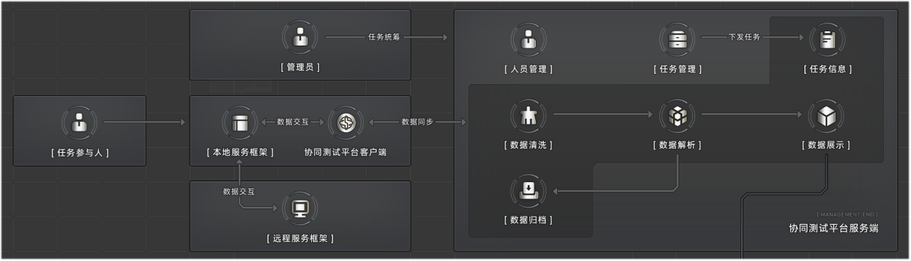 - 协同测试平台:搭载了协同测试平台客户端与服务端,通过协同测试平台,可节约数据传递、汇总和沟通协作的成本,提升测试效率,使测试过程更为清晰透明,也便于后期进行复盘。